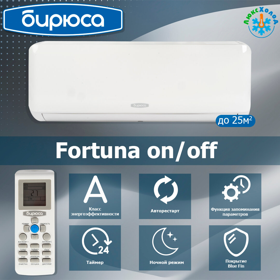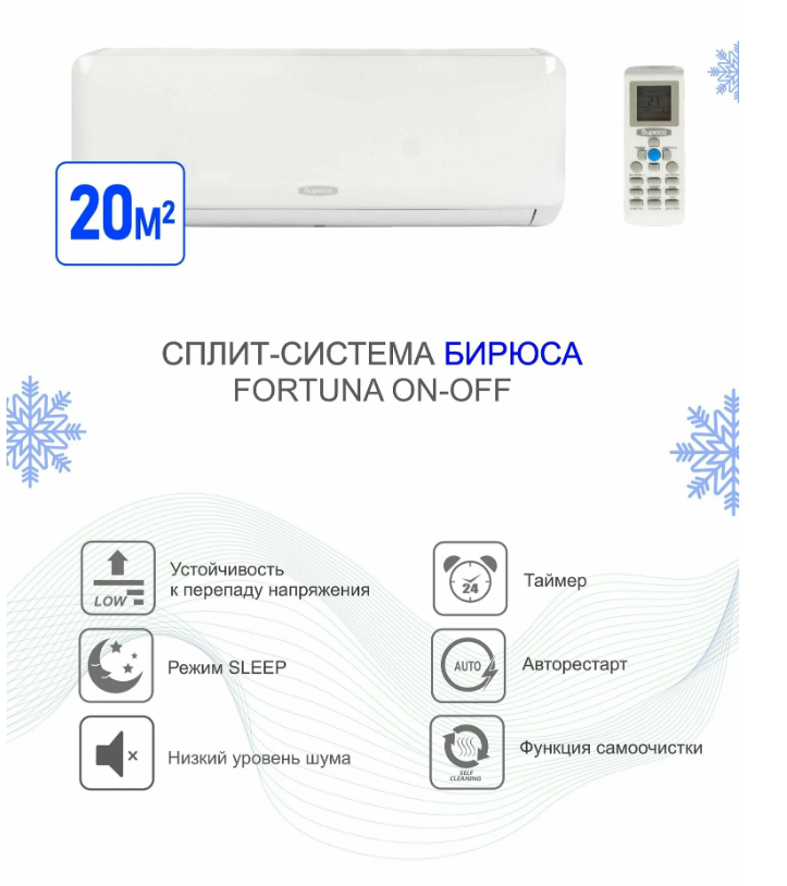 Настенные сплит-системы Бирюса серии F On/Off отличаются низким уровнем шума и удобством управления. Имеется возможность настроить поток воздуха для наибольшего комфорта.Особенности и преимущества Бирюса B-09FPR/B-09FPQ F On/Off:Компрессор GMCC-Toshiba. Качество и японские технологии современного высокопроизводительного компрессора гарантируют безотказную работу кондиционераАнтикоррозийное покрытие Golden Fin. Инновационное антикоррозийное покрытие деталей внутреннего и внешнего блока кондиционера позволяет в несколько раз увеличить ресурс его работыФункция Авторестарт. Возобновление работы кондиционера при сбое электроэнергии с раннее установленными параметрамиСовременный, удобный и функциональный пульт управления позволяет интуитивно управлять всеми режимами работы для обеспечения комфортаСкрытый дисплей Мираж. Индикация температуры на панели внутреннего блока для удобства управления кондиционеромВозможность отключения и включения кондиционера в любое установленное время сутокФункция самоочистки предотвращает грибковые образования на поверхности испарителя и способствует поддержанию здорового микроклимата в помещенииФункция самодиагностики. Своевременный автоматический контроль работы всех элементов кондиционера позволяет предотвратить аварийные ситуации.